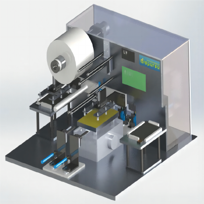 (4)正、負極料盒配有吸塵裝置,可吸走極片上掉落的灰塵,統(tǒng)一收集在機器下方的粉塵收集袋中,粉塵收集袋設計成可拆式,方便粉塵處理。