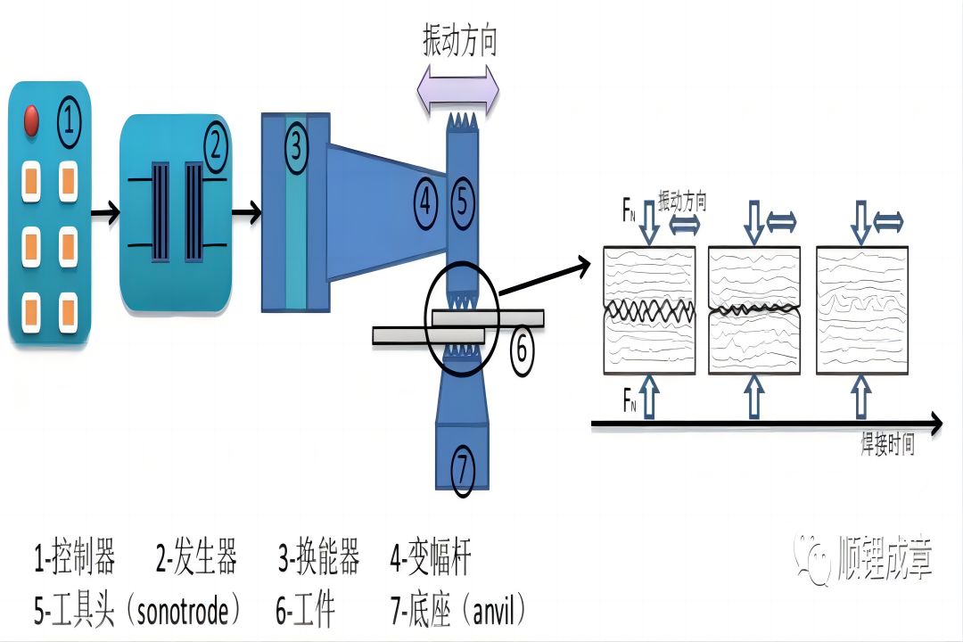 鋰離子電池超聲焊接原理及影響因素焊接工序作為鋰電池制造工藝中的關(guān)鍵一環(huán),被應(yīng)用于鋰電池鋁/銅正負(fù)集流體、極片以及電池封裝等多個位置的連接,任何焊接接頭缺陷都將顯著影響鋰電池性能的一致性。因此,理解超聲焊接過程十分必要。1、超聲焊接原理在超聲焊接過程中